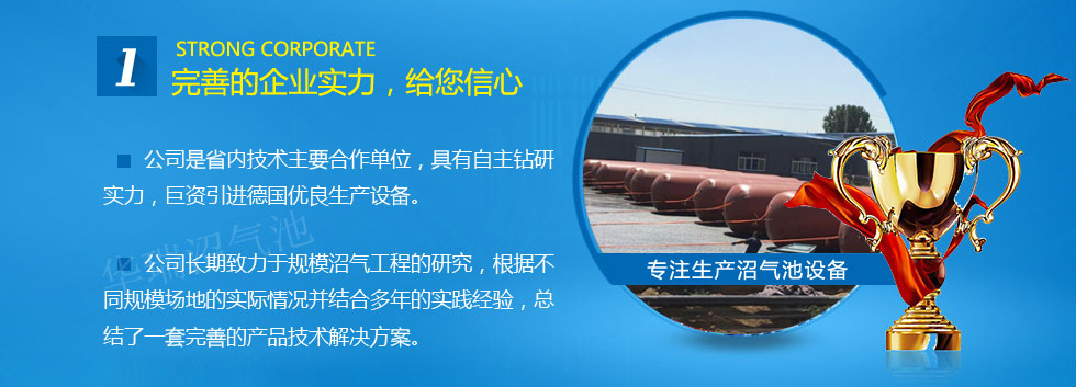 生產(chǎn)設備和生產(chǎn)技術人員,技術水平高,創(chuàng)新能力強的沼氣池設計研發(fā)隊伍,使公司不斷發(fā)展壯氣浮機大并連年取得新突破。我們時水囊刻謹記以誠信之心取信于社會,照現(xiàn)代企業(yè)制度的要求提高沼氣設備經(jīng)營決策水平管理,秉承以仁為本以質(zhì)取勝的農(nóng)村沼氣池